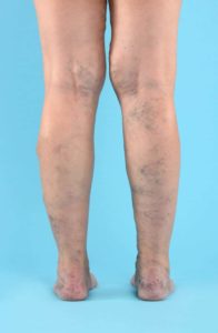 All of this leads to the purple, often raised, curves of varicose veins. These are purple because they are carrying deoxygenated blood.